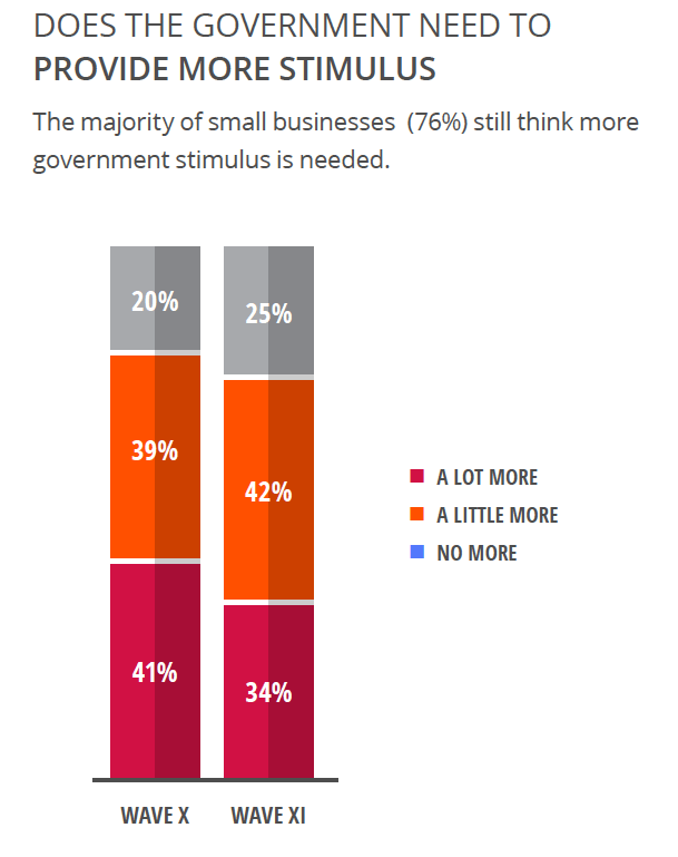 For example, a full 76% of businesses still think more government stimulus is needed.