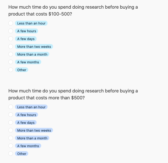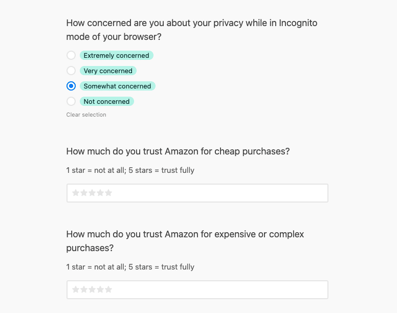 For example, the survey asks several questions about trust. Do we trust search results? Which sources of information online are the most trusted? The survey also really wants to know about how we make decisions about buying products online, and if we spend more time on shopping decisions under $500 vs those costing more than $500.