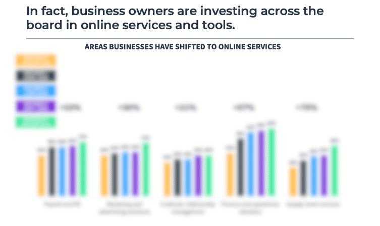 If we drill down into the types of online services they’re adopting, the plot thickens. Specifically, finance and operations solutions are in the lead with 66 percent adoption. That’s followed by payroll and HR (53 percent), marketing and advertising (52 percent), supply chain services (49 percent) and CRM (40 percent).