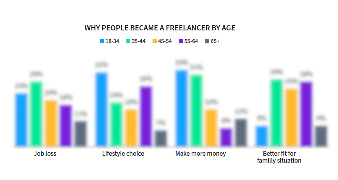 – For example, 67 percent of freelancers under 55 say it’s a lifestyle-driven choice, compared to just 29 percent of freelancers 55 and up.