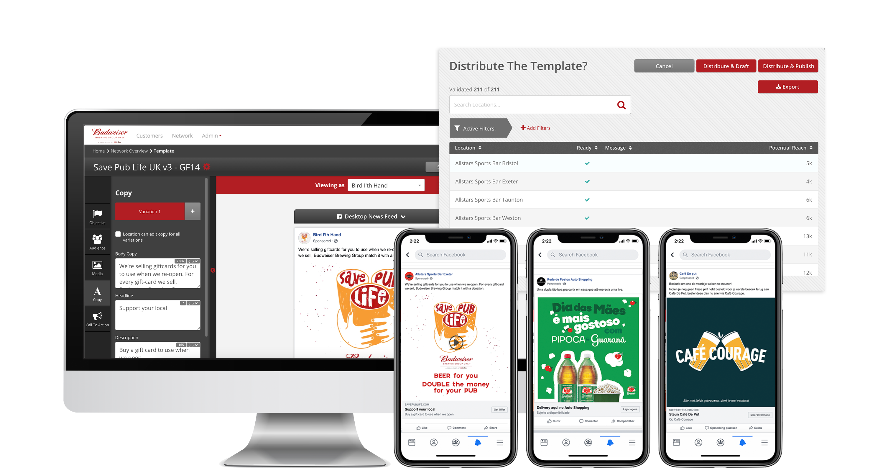 Specifically, the campaign involved supporting ABI’s worldwide network of restaurants, bars, and retailers with local Facebook and Instagram ads. Local establishments can launch the ads from their Facebook pages. The ads do a variety of things to encourage consumers to support local eating and drinking establishments.